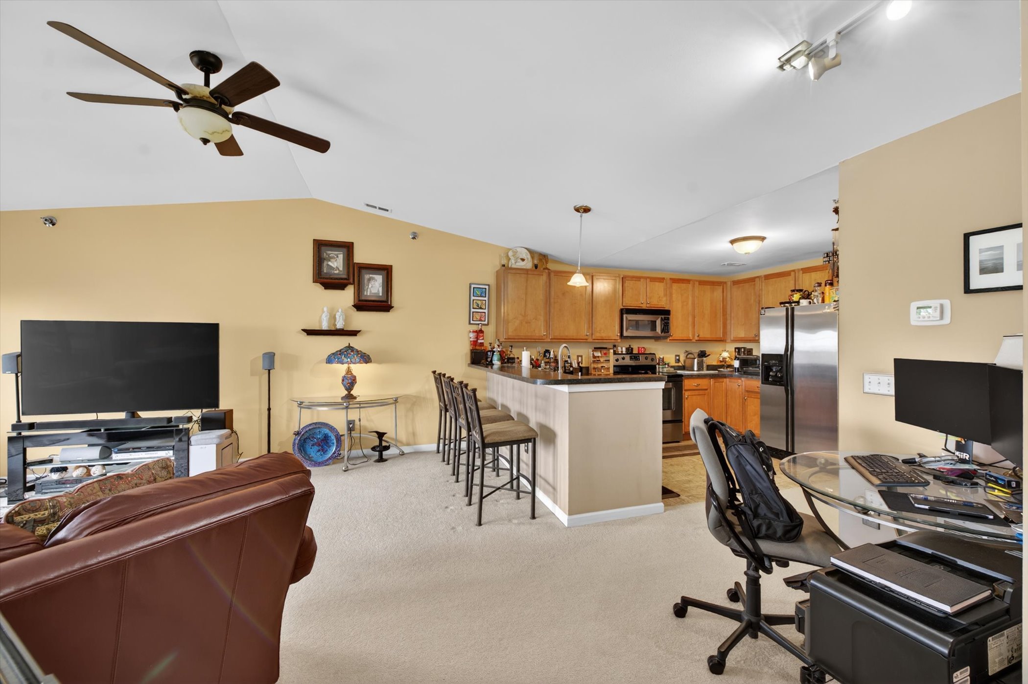 Welcome to easy, low-maintenance living in this Walled Lake condo! This ranch-style unit offers the convenience of first-floor living with an open, airy layout, highlighted by soaring ceilings and great natural light. The spacious living area flows seamlessly into the kitchen and dining space, creating a comfortable setup for both everyday living and entertaining. Step outside to your Trex deck and take in the views, perfectly positioned along a parade route with a front-row seat to Walled Lake fireworks. Enjoy nearby walking trails and a community feel that makes this location stand out. This home features 2 bedrooms and 2 full baths, including a generously sized primary suite, along with the added benefit of a 2-car attached tandem garage. Recent updates provide peace of mind, including a newer water heater (approx. 1 year), updated faucets, garbage disposal, and newer plumbing fixtures/toilets. Association covers water, trash, and grounds maintenance, making for truly low-maintenance living. A great opportunity to own in a desirable location with both comfort and convenience built in!