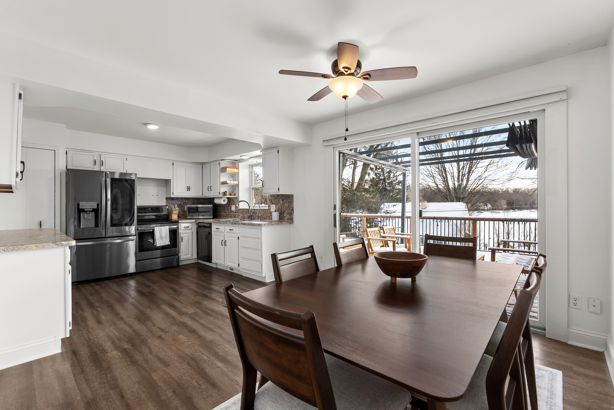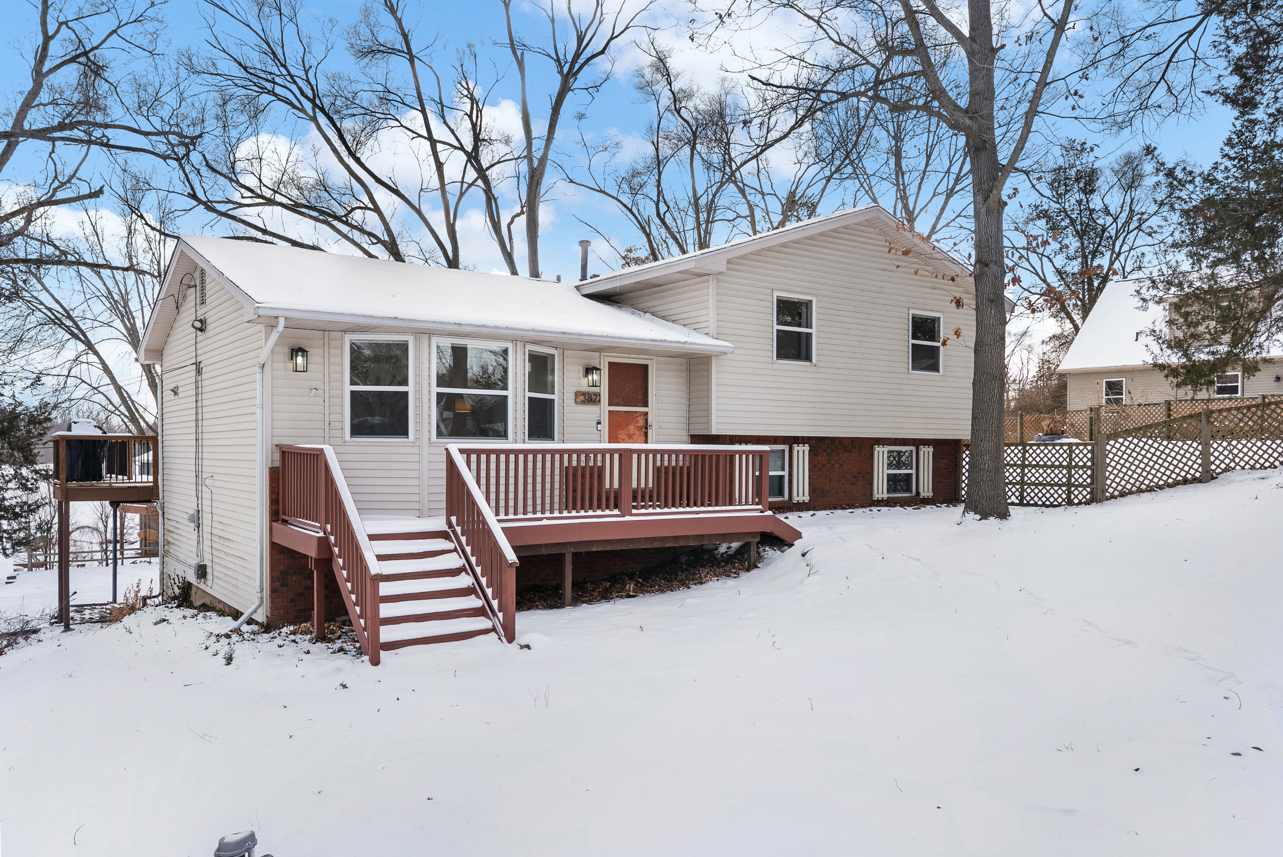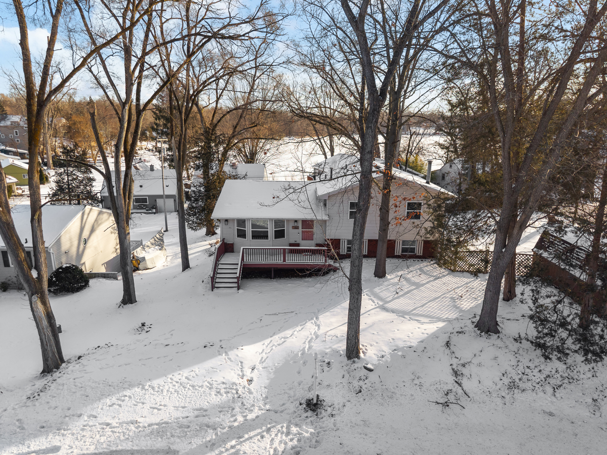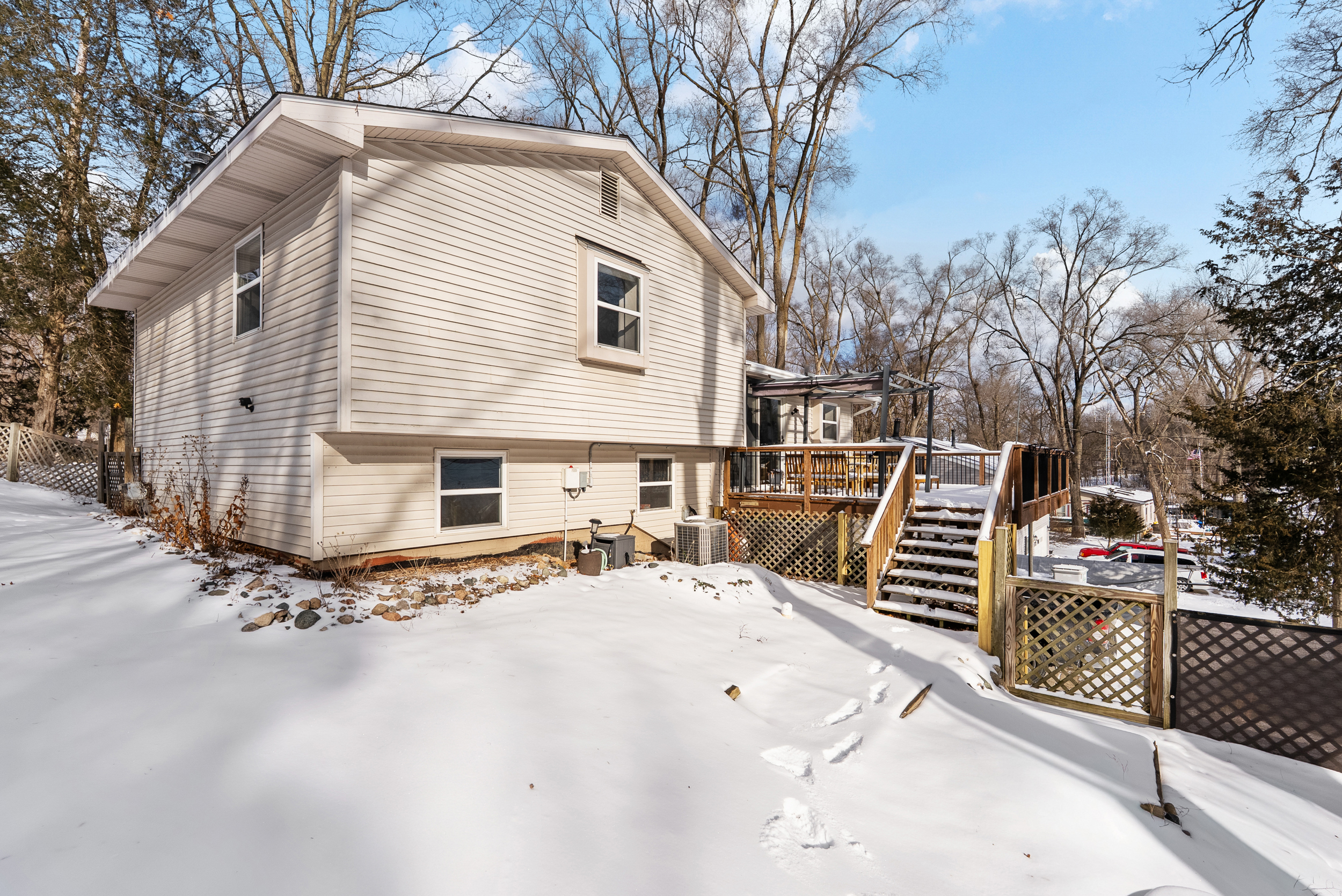 Welcome to year-round lake living in the sought-after Cedar Beach Resort Community! This charming 3-bedroom, 1-bath tri-level is perched on a gentle hill with peaceful views of Cordley Lake and access to beach areas, parks, and docking for electric boats, perfect for kayaking, relaxing, and enjoying Michigan summers. Since purchasing in 2024, the sellers have completed several thoughtful updates including a brand-new retaining wall, renovated upstairs bathroom, freshly painted full interior, freshly painted kitchen cabinetry, updated bifold closet doors, new floor vent covers, and a recently fully serviced CGC water filtration system. A brand-new kitchen ceiling light is also included. Previous improvements add even more value and peace of mind, including new carpet and engineered wood flooring, updated lighting and ceiling fans, renovated full bath with new tub, tile, vanity, mirrors, and fixtures, plus high-end LG washer and dryer. The home also features a complete CGC water system with iron filter, softener, well tank, and reverse osmosis drinking water, along with a newer furnace, water heater, Leaf Filter gutter system, and roof (2017). A transfer switch was installed for a generator, and the attached two-car garage includes newer doors and opener. Inside, enjoy a bright and functional layout with spacious living and family rooms, while outside you’ll find a fenced yard and deck ideal for entertaining or unwinding after a day on the lake. Please note: current listing photos were taken during winter, but additional images showcase the home and lake during the warmer months so buyers can truly appreciate the summer setting. Whether you’re searching for a weekend retreat or full-time residence, this lake-access home offers comfort, charm, and lifestyle all in one. Don’t miss this opportunity, schedule a showing today!