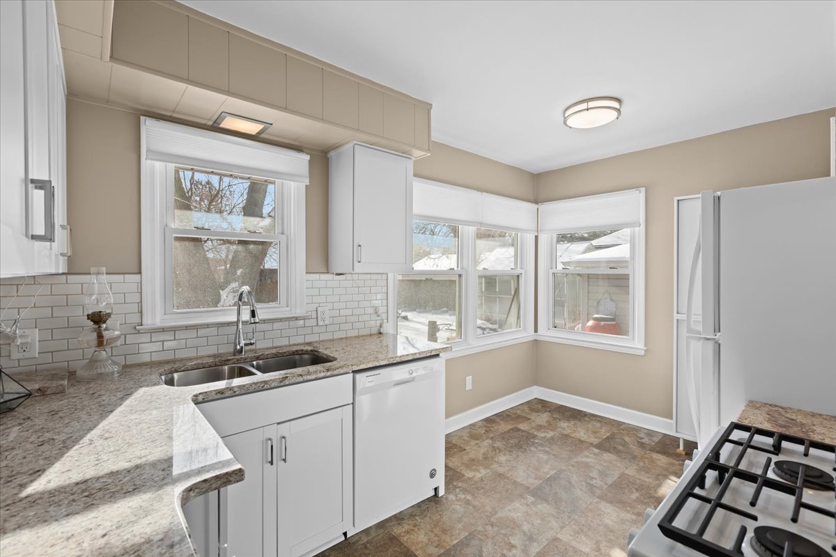 Welcome to this thoughtfully updated ranch set on a rare double lot in the heart of Ferndale. Inside, you’ll find a bright and inviting layout with hardwood flooring throughout most of the main level, while the spacious primary bedroom features cozy carpeting for added comfort. The kitchen was remodeled in recent years and includes newer appliances, ample cabinetry, and a dining area with a corner window that looks out over the fenced backyard. The fully renovated ceramic tile bathroom adds a clean, modern touch, and the partially finished lower level offers additional living space with a recreation area, laundry room, and generous storage. Outside is where this home truly shines — enjoy a large deck, mature trees, pond feature, greenhouse, and plenty of space for gardening, entertaining, or pets. The insulated two-car garage with electricity and wide driveway make it ideal for a workshop, hobbies, or extra storage. Major improvements include newer windows, roof (2023), furnace, PEX plumbing, updated garage insulation, and a recently installed perimeter drainage system. Located just blocks from parks, coffee shops, dog parks, bike lanes, transit, and local favorites, this home blends comfort, functionality, and neighborhood charm. Move-in ready and available for immediate possession at closing.